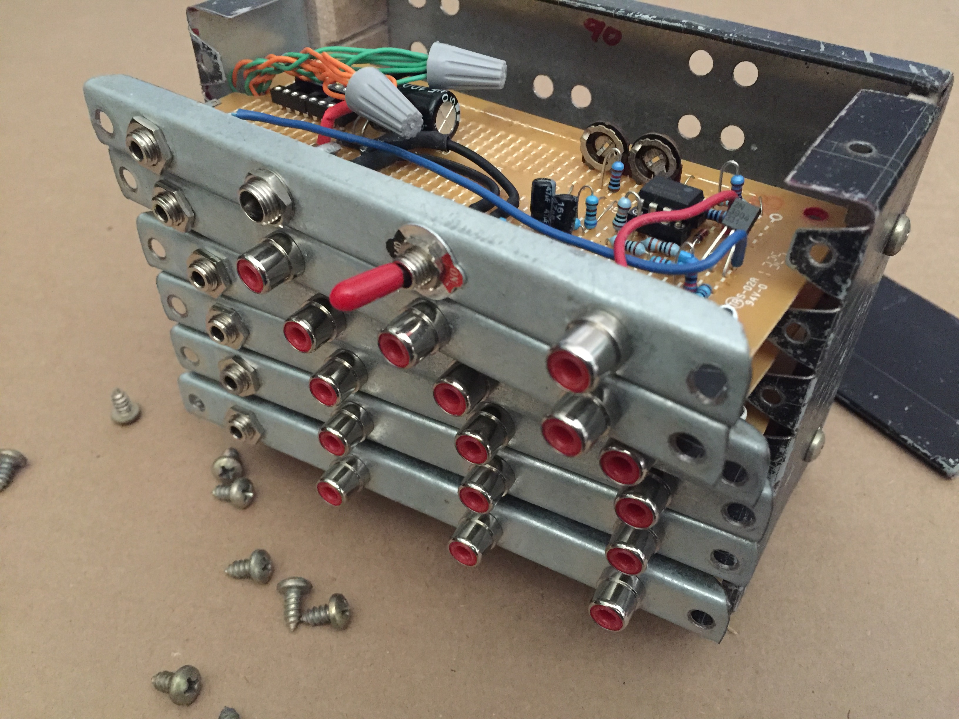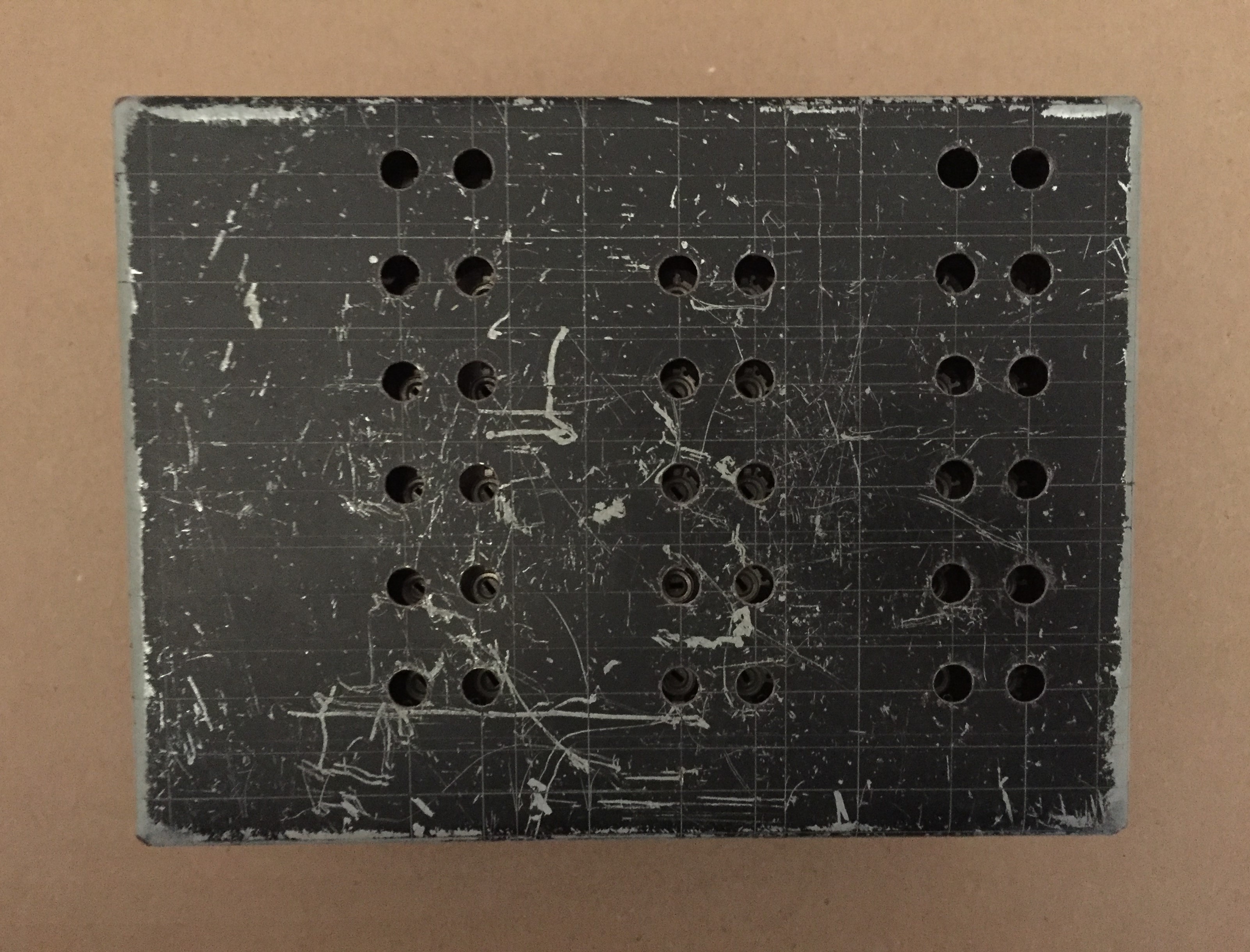 Kind of hard to see in there... And also, the "finish" on this box is kind of ridiculous. When I make a sheetmetal box I usually apply some spray paint and make my break marks with a knife. Somehow I folded this thing inside out, but the artist didn't mind. Lucky me.