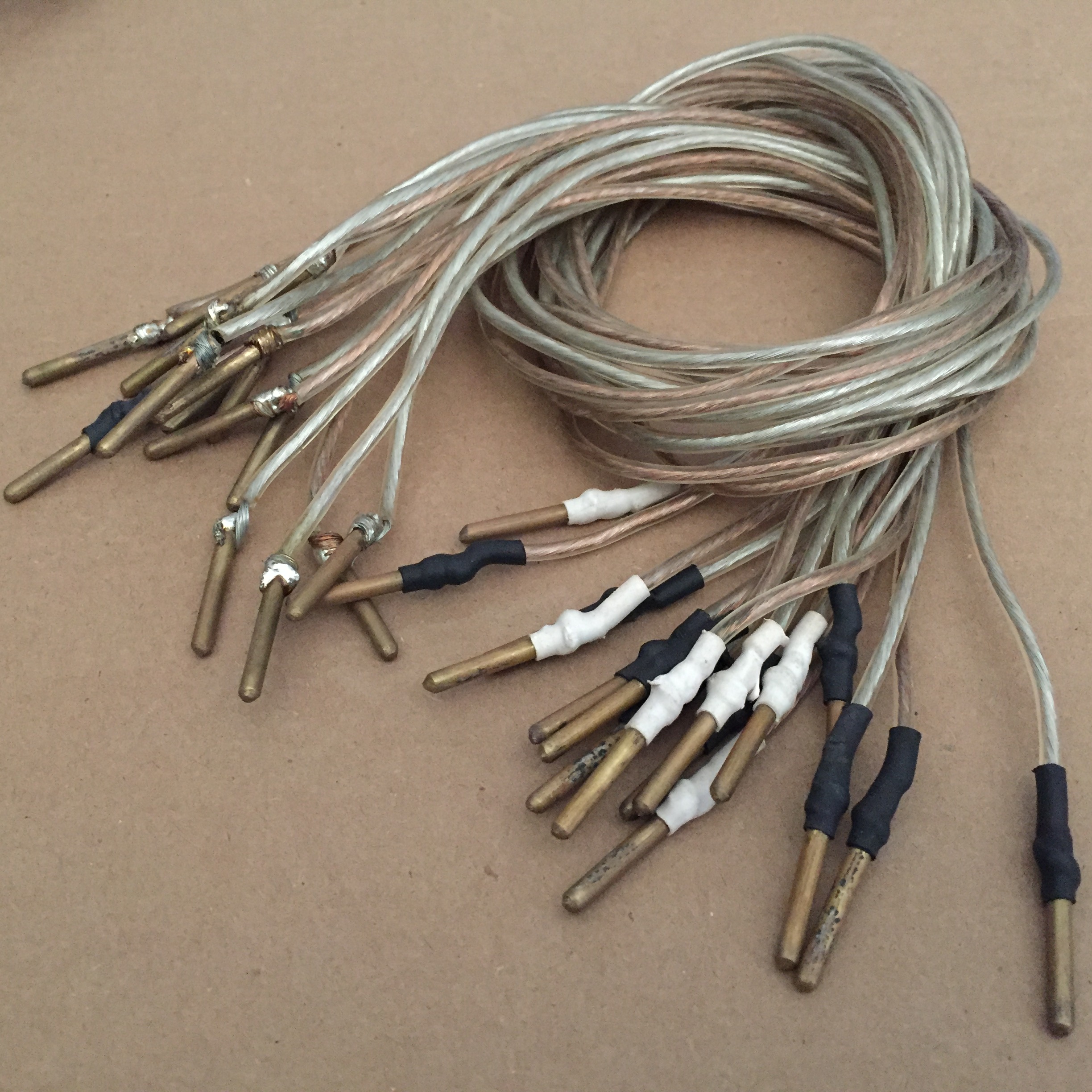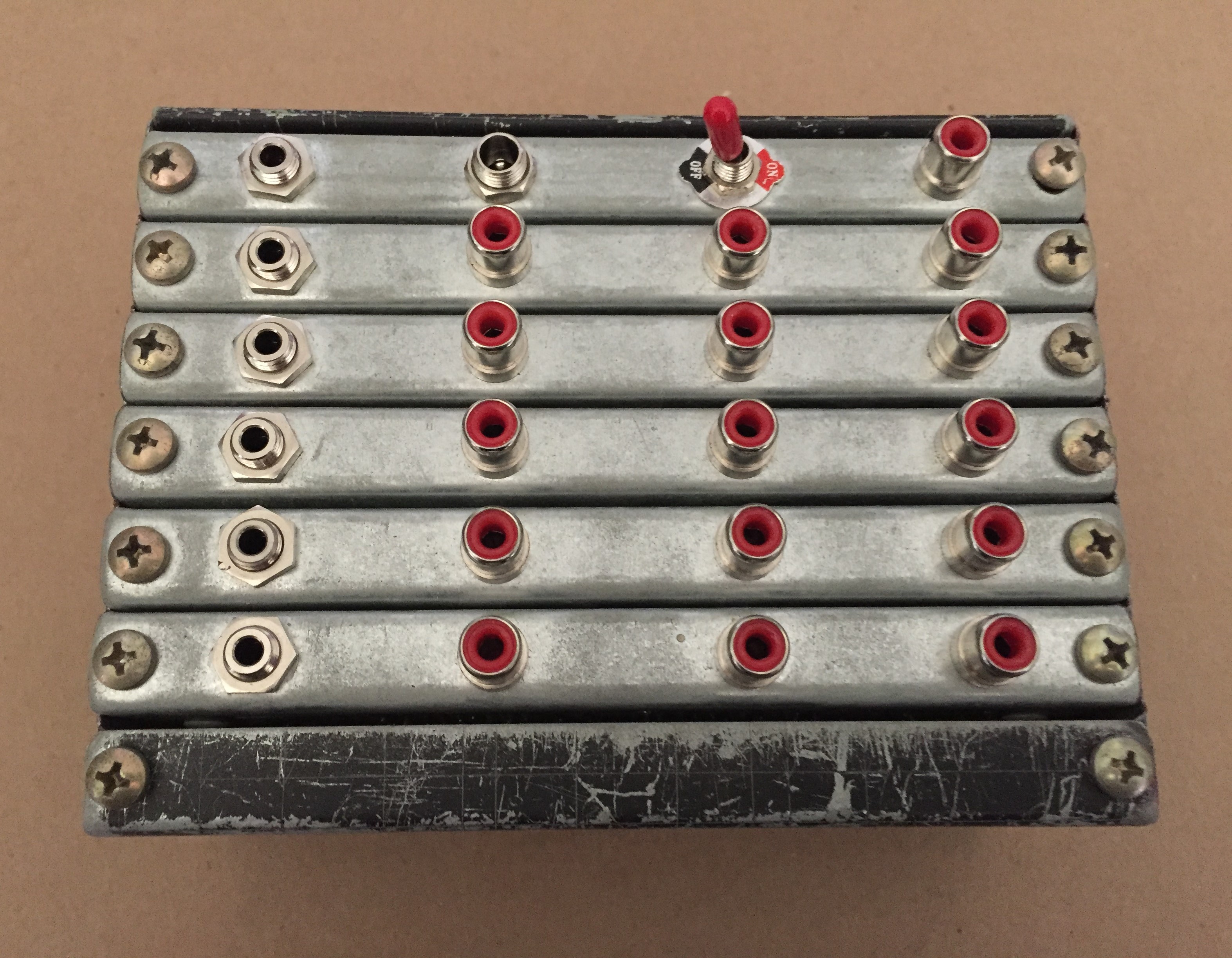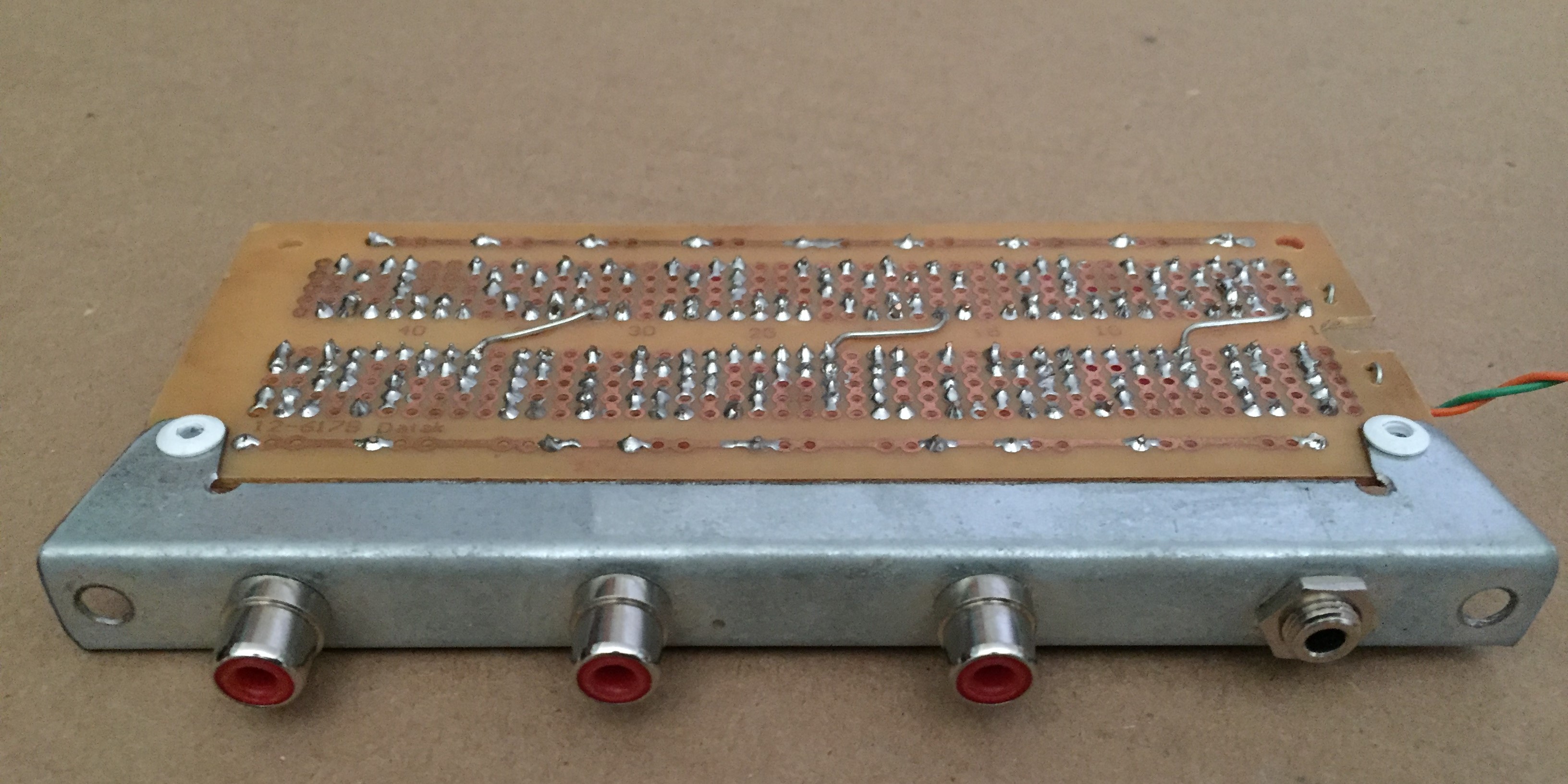 The red RCA jacks are the inputs for the touch surfaces. I made some short cables from speaker wire to get from here to there: