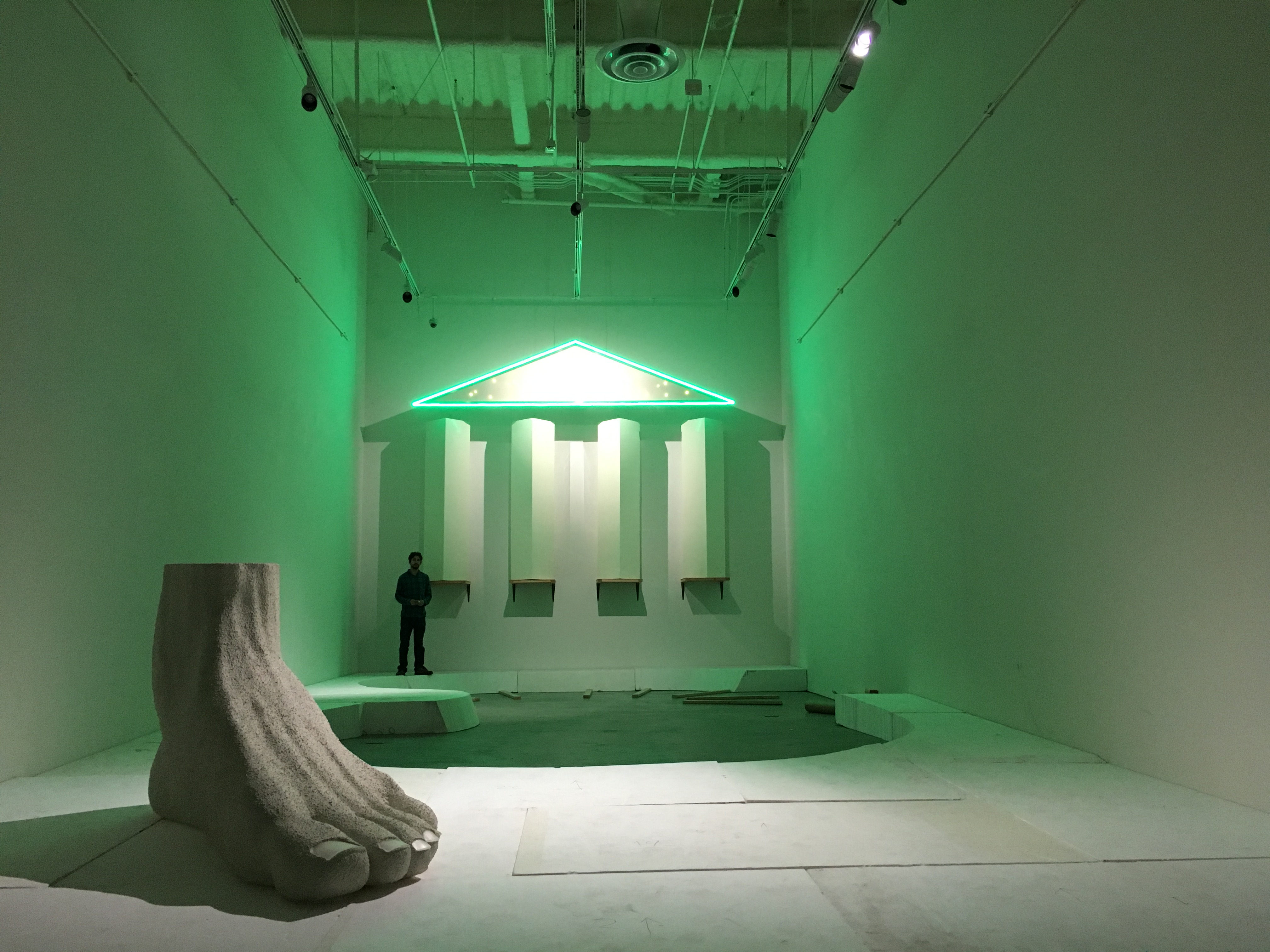 Like I mentioned before, I got through close to 1000 cubic feet of this stuff. Most of this made up an approximately 1000 sq. ft. sloping landscape with a lazy river -- no joke. The rest went in to the giant foot, and a 12 foot tall temple facade thing (raised 5 and a half feet and mounted to a wall). This partial installation will give an idea of how big all this was: