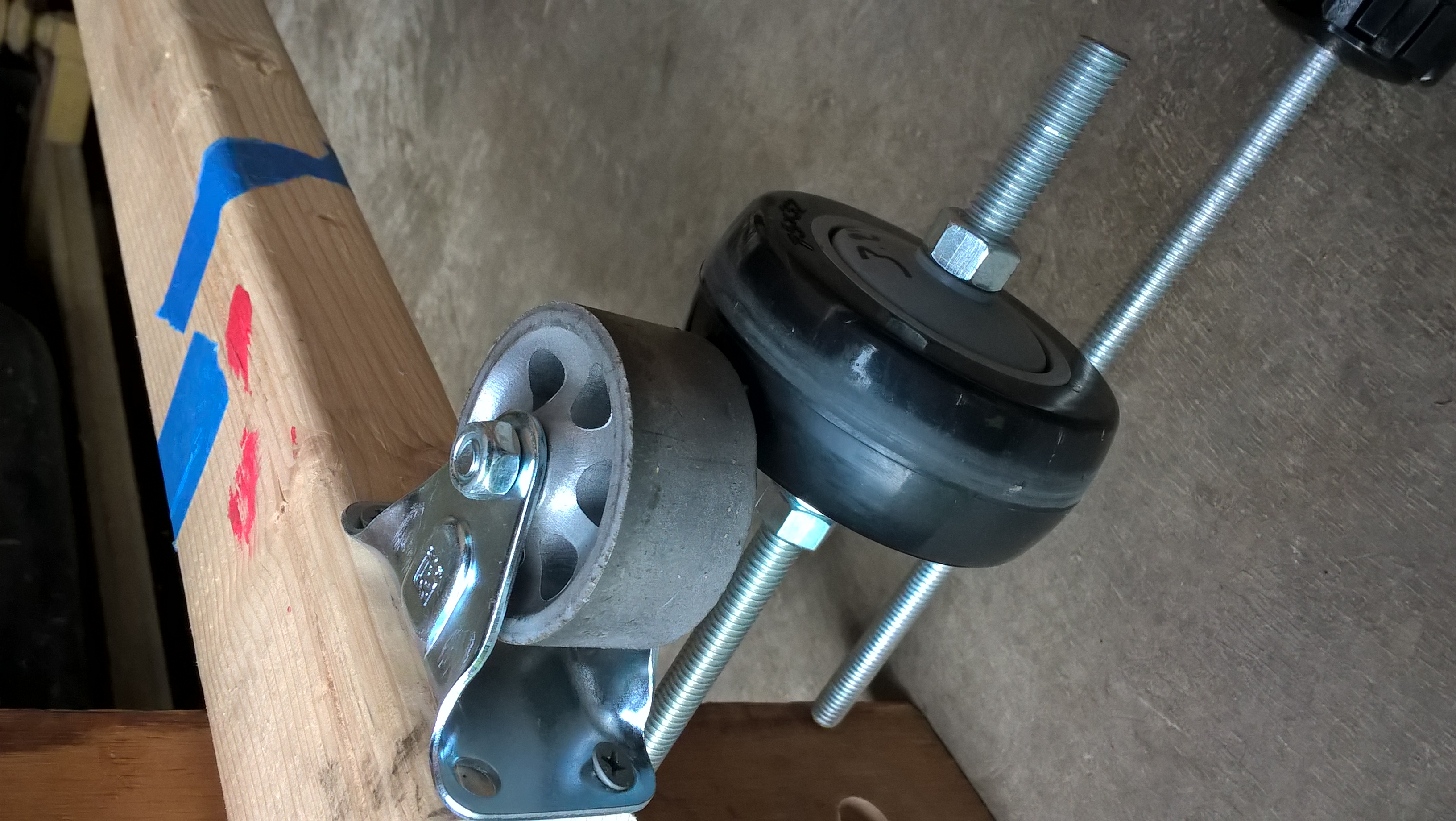 The cart was made to roll on a 14' ladder my grandpa had. I did the wheels like this: