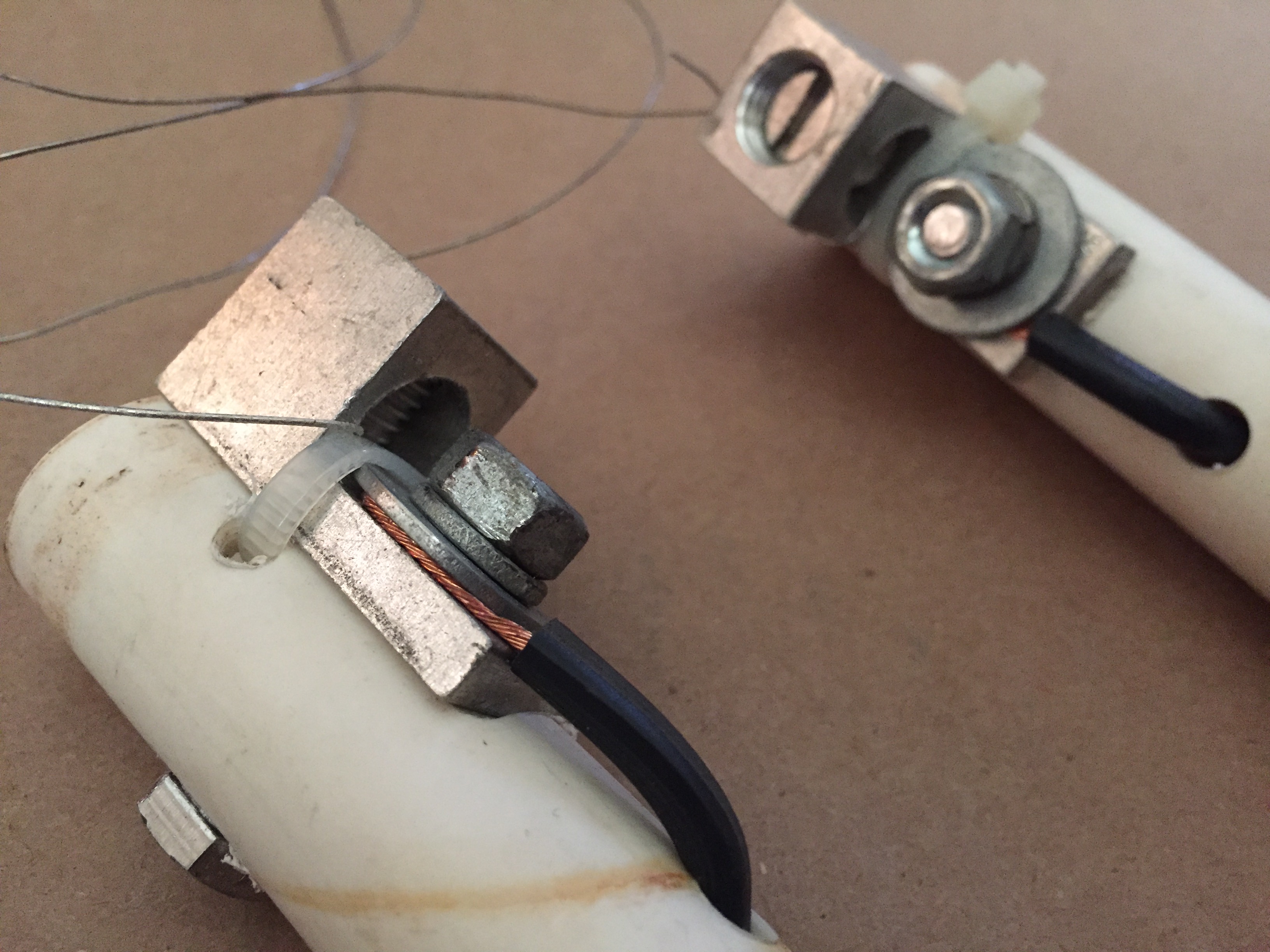 Here is a closeup of the wire clamps on the handles--the configuration used for manual cuts: